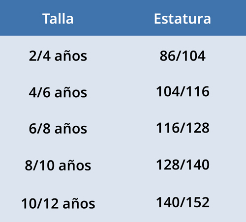 | Talla | 10/12, 2/4, 4/6, 6/8, 8/10 |